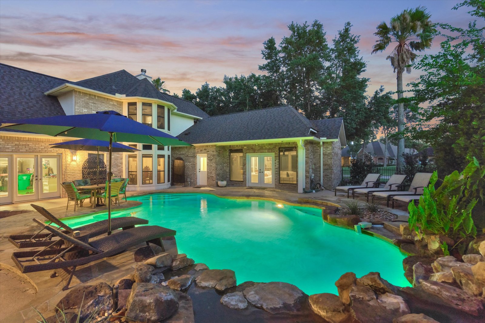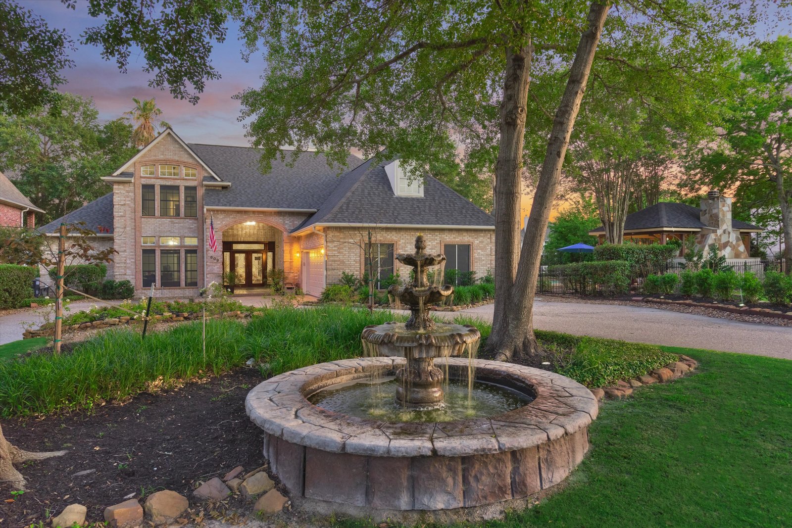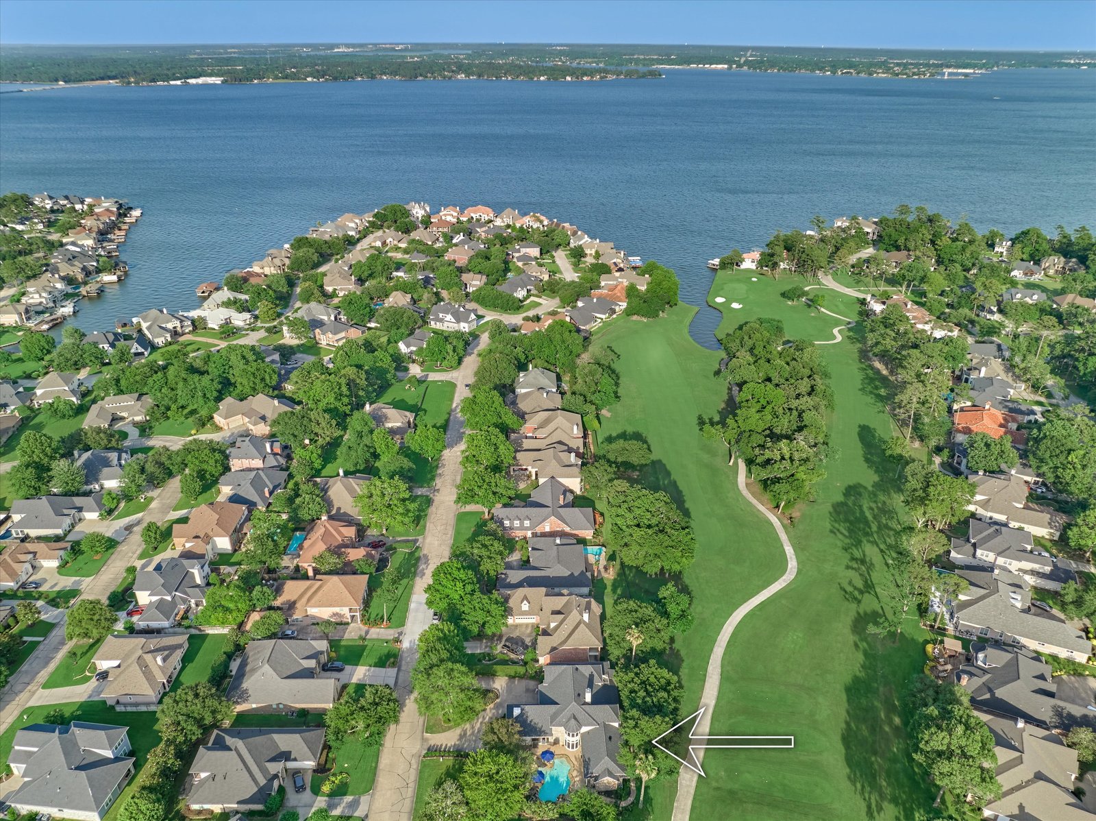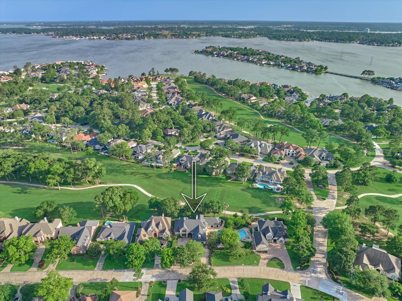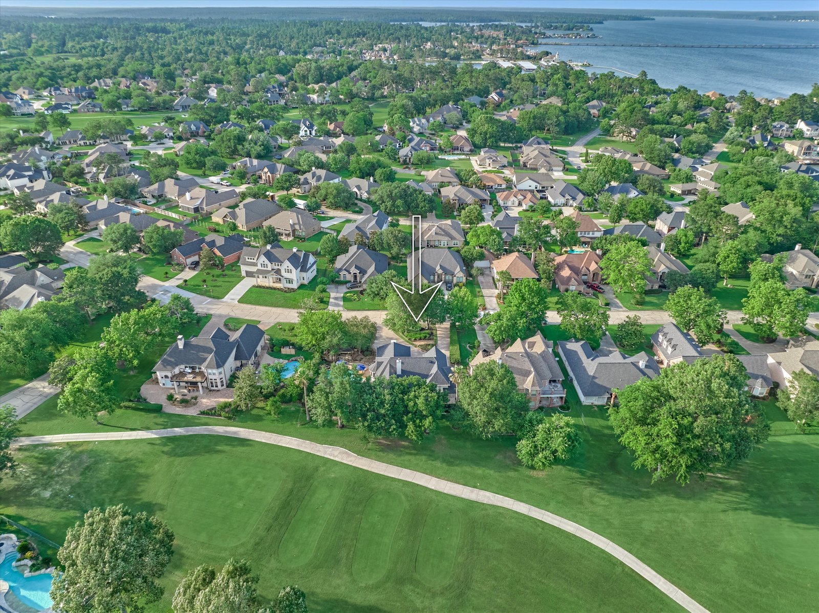 Stunning home in the prestigious Bentwater Country Club, ideally positioned along the 12th hole of the Weiskopf golf course. This elegant residence features five bedrooms, five full and one half baths, two car plus golf cart garage and a variety of spacious living and flexible-use areas, perfect for both everyday comfort and exceptional entertaining. Sophisticated finishes and timeless design elements flow throughout, including newer engineered wood flooring, solar screens, a security system and first floor game room. A dedicated home office with full bath, sunroom, and screened-in patio offer unique interior highlights. Enjoy outdoor living with a sparkling chlorine pool, expansive decking, and a large covered cabana complete with a full outdoor kitchen and fireplace. Upstairs, four guest bedrooms, two full baths, and a private balcony provide ample space for family and visitors alike. A truly remarkable home in one of Lake Conroe’s premier communities.