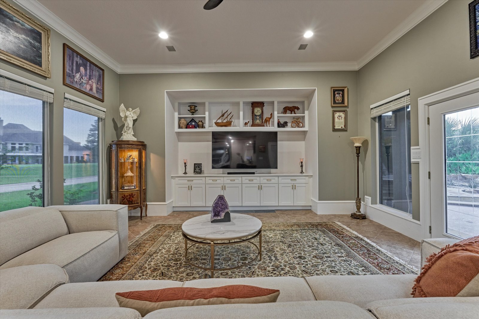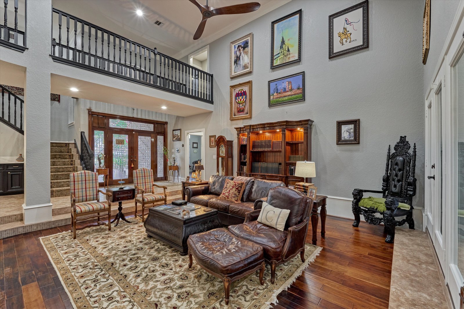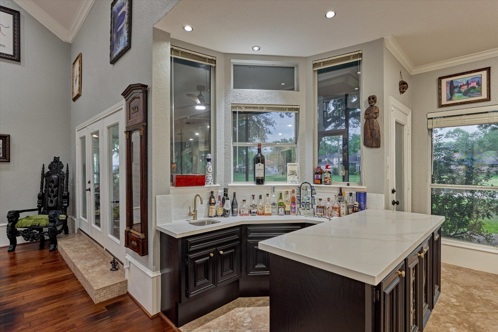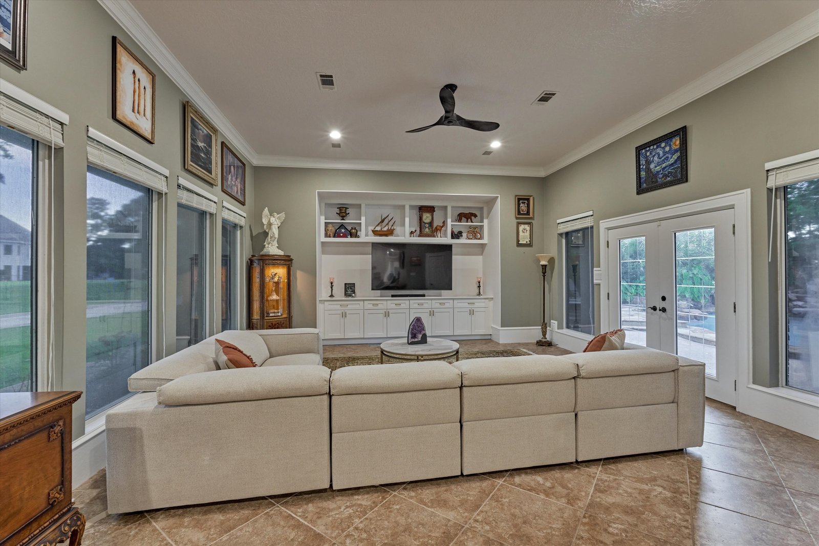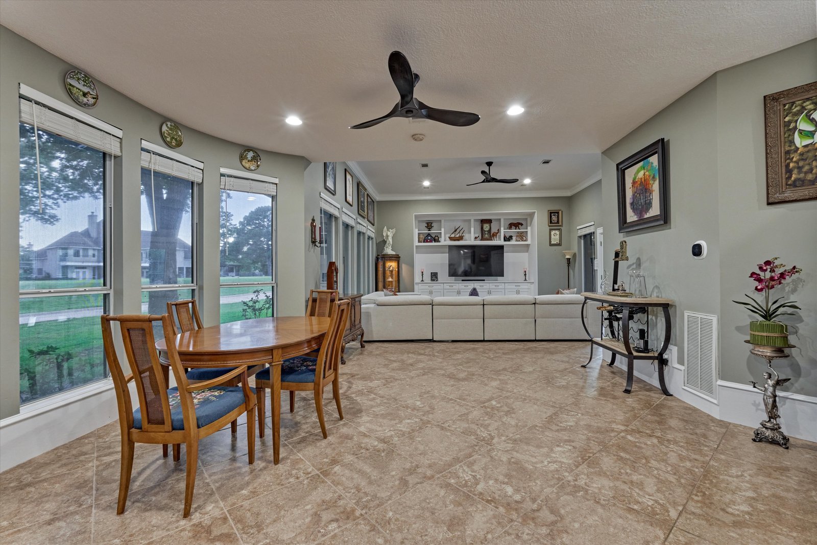 Stunning home in the prestigious Bentwater Country Club, ideally positioned along the 12th hole of the Weiskopf golf course. This elegant residence features five bedrooms, five full and one half baths, two car plus golf cart garage and a variety of spacious living and flexible-use areas, perfect for both everyday comfort and exceptional entertaining. Sophisticated finishes and timeless design elements flow throughout, including newer engineered wood flooring, solar screens, a security system and first floor game room. A dedicated home office with full bath, sunroom, and screened-in patio offer unique interior highlights. Enjoy outdoor living with a sparkling chlorine pool, expansive decking, and a large covered cabana complete with a full outdoor kitchen and fireplace. Upstairs, four guest bedrooms, two full baths, and a private balcony provide ample space for family and visitors alike. A truly remarkable home in one of Lake Conroe’s premier communities.