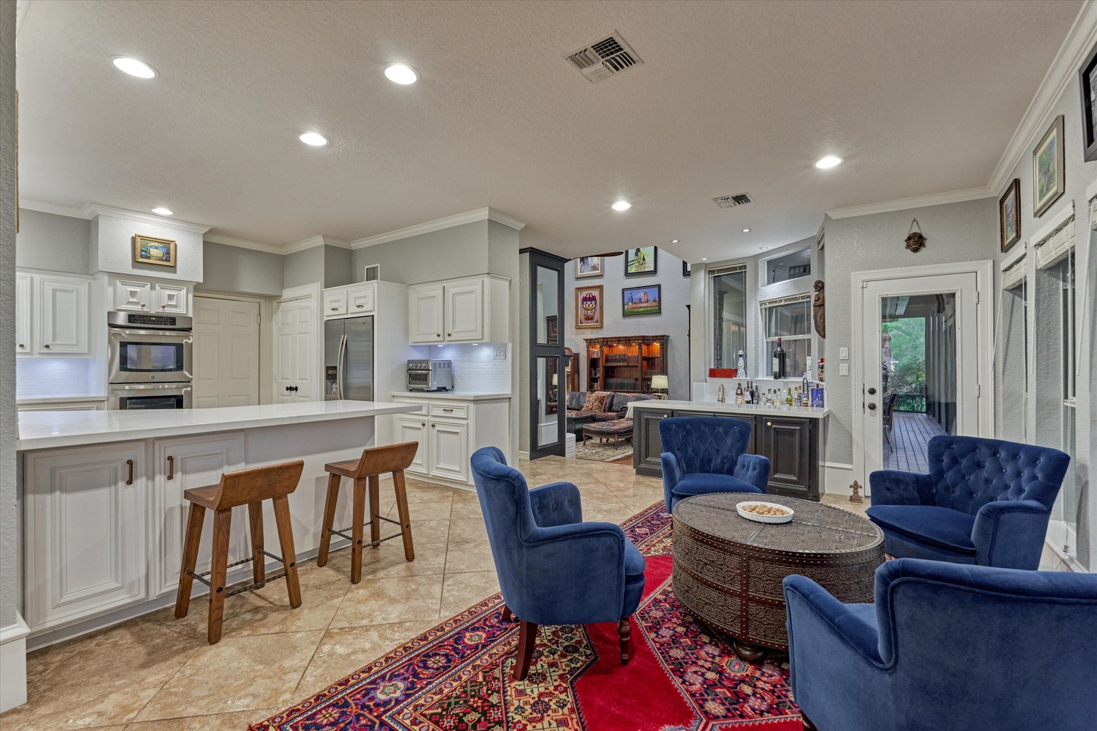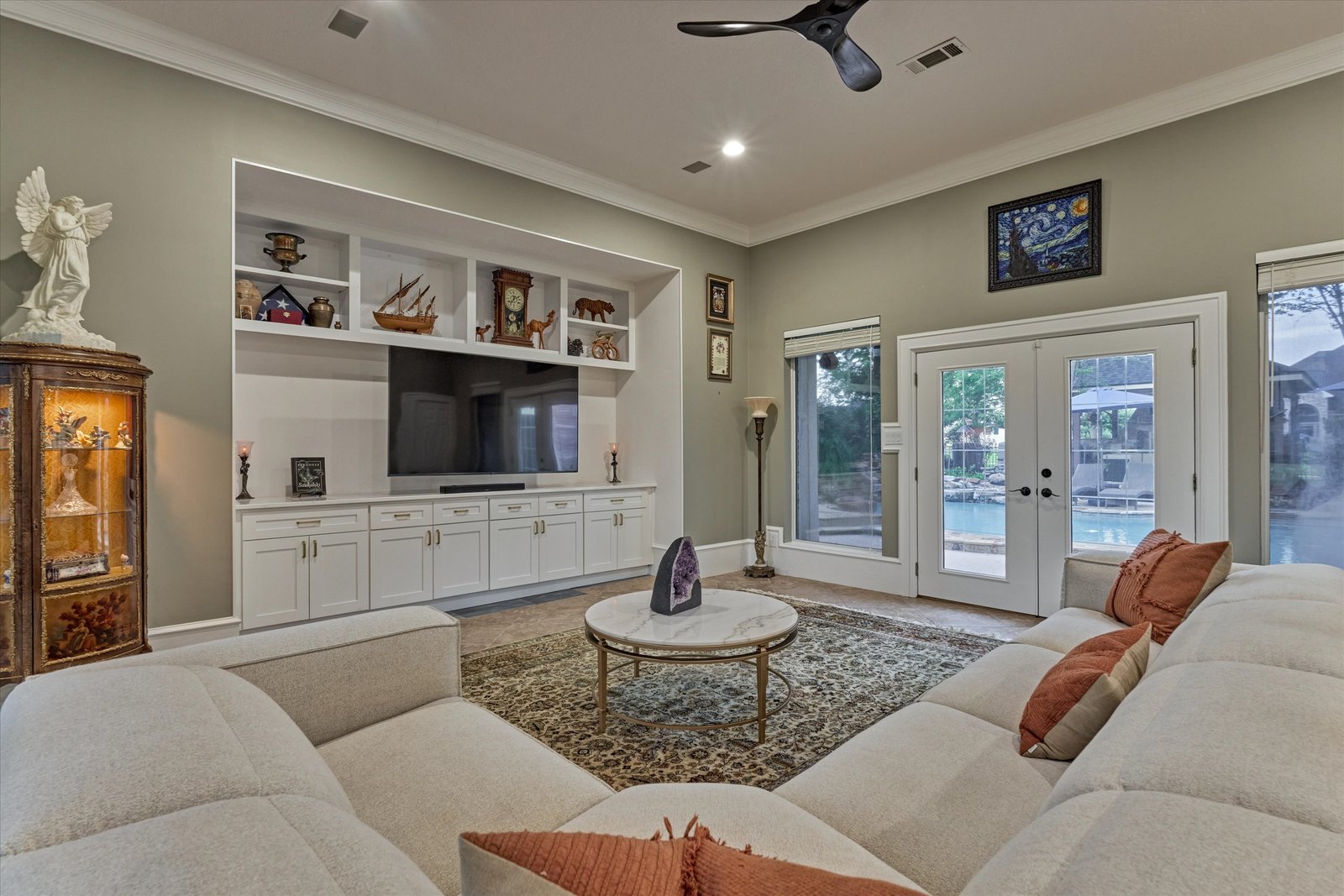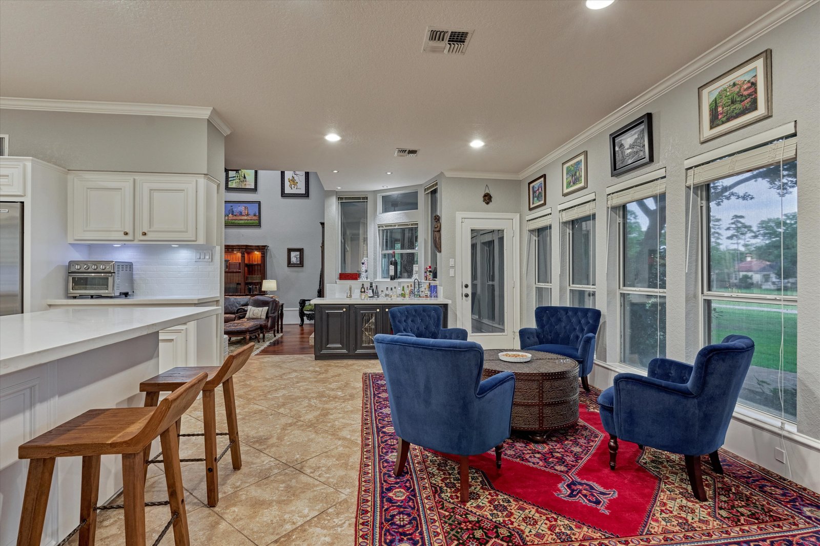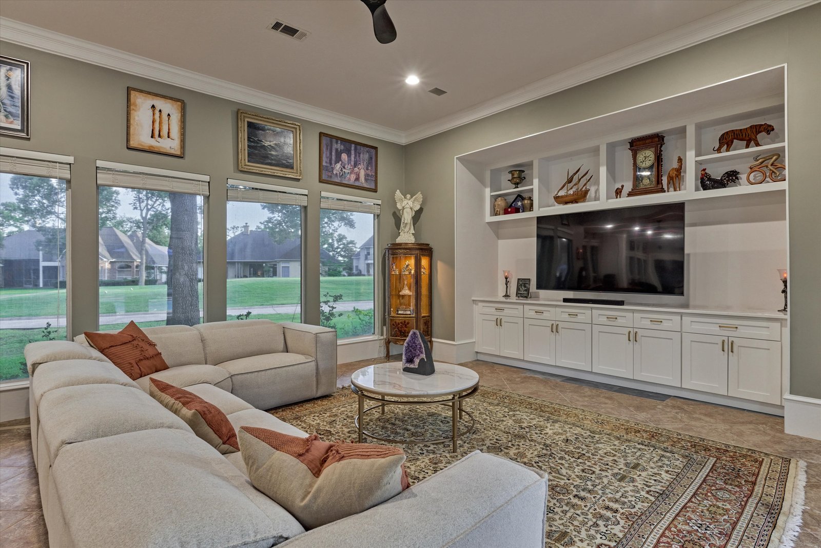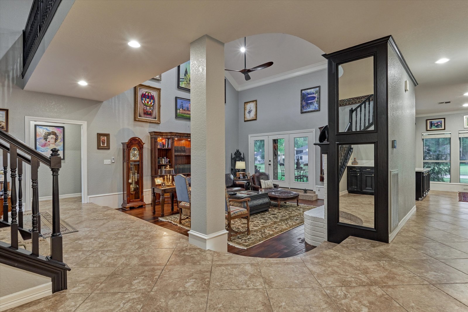 Stunning home in the prestigious Bentwater Country Club, ideally positioned along the 12th hole of the Weiskopf golf course. This elegant residence features five bedrooms, five full and one half baths, two car plus golf cart garage and a variety of spacious living and flexible-use areas, perfect for both everyday comfort and exceptional entertaining. Sophisticated finishes and timeless design elements flow throughout, including newer engineered wood flooring, solar screens, a security system and first floor game room. A dedicated home office with full bath, sunroom, and screened-in patio offer unique interior highlights. Enjoy outdoor living with a sparkling chlorine pool, expansive decking, and a large covered cabana complete with a full outdoor kitchen and fireplace. Upstairs, four guest bedrooms, two full baths, and a private balcony provide ample space for family and visitors alike. A truly remarkable home in one of Lake Conroe’s premier communities.